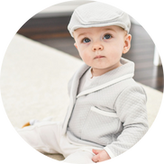 Introducing our Grayson 3-Piece Suit for your newest addition! Made from soft quilted cotton and French terry, this baby boy suit features unique textures not commonly seen in newborn dresswear. The folded collar, functional pockets, and pleated front creases on the pants give your little one a regal appearance, fit for a stylish prince. Complete his look with the newsboy hat, booties, and blanket - perfect for weddings, special occasions, and adorable photo ops. From bringing baby home to first birthday celebrations and more, your little one will feel cozy and dapper in the Grayson baby boy suit!
