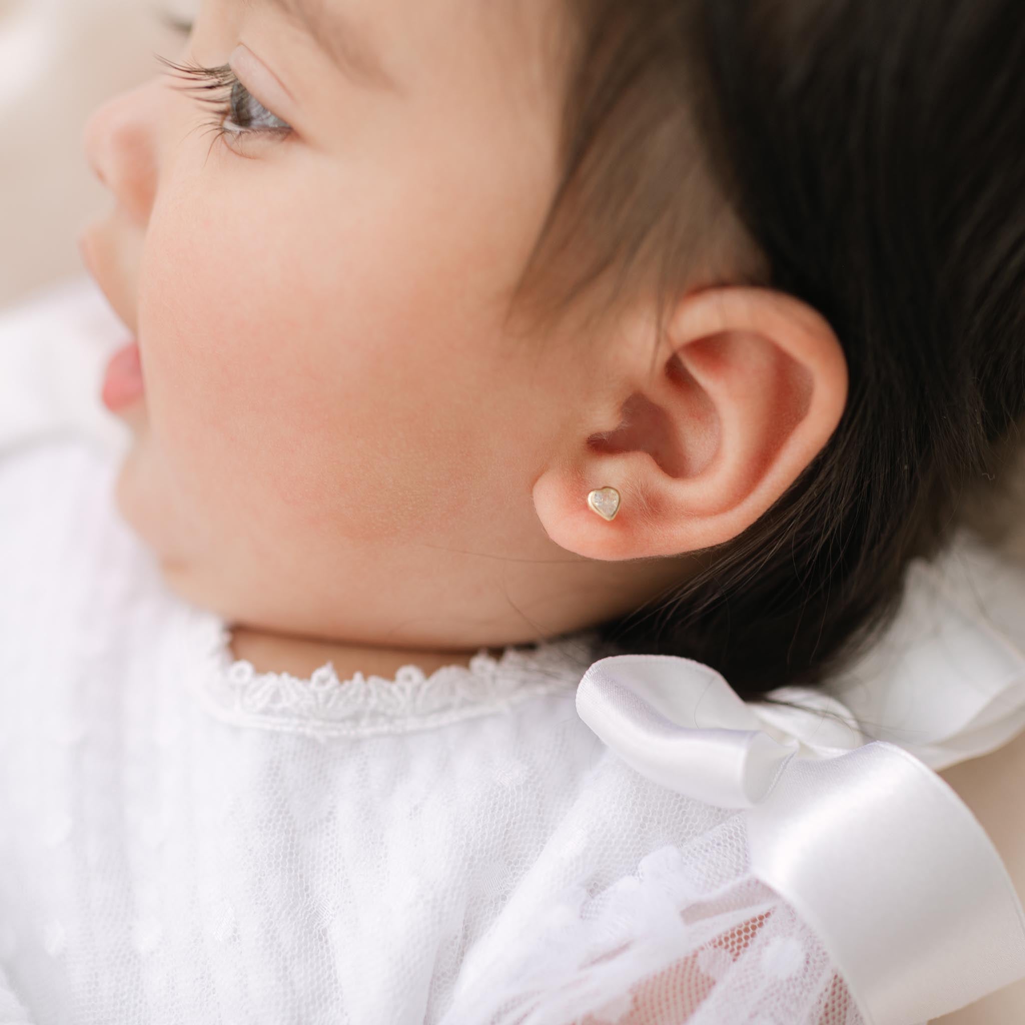 A little one can never outgrow a pair of earrings! These sweet heart shaped earrings are perfect to adorn her ears as a special gift that can be worn for many occasions and special days to come! Made with 14k gold and heart shaped birthstones, the backs are screw on to easily secure so they will not easily be lost once in!